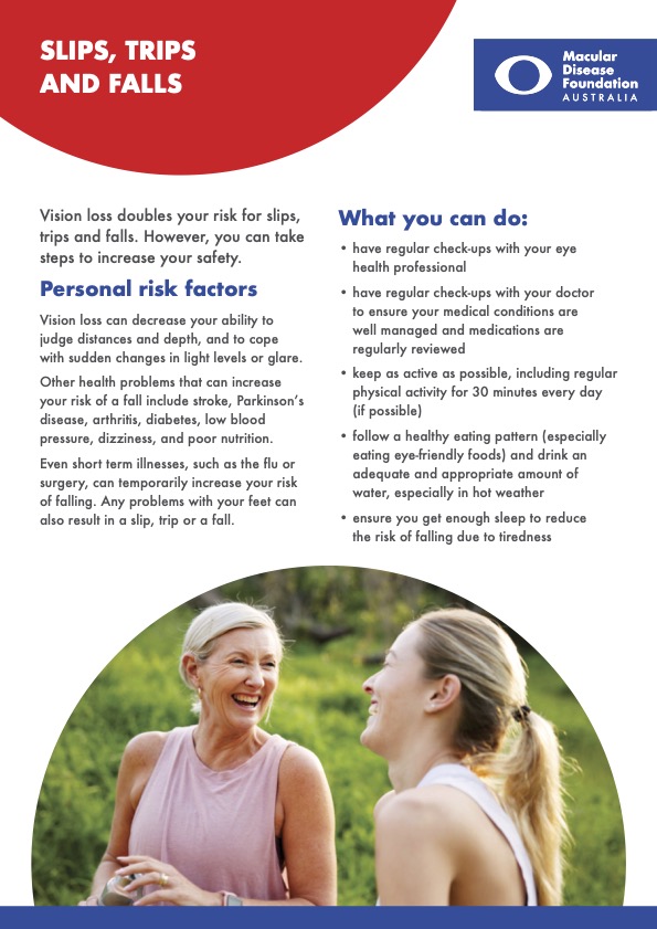 This fact sheet explains how vision loss significantly increases the risk of slips, trips and